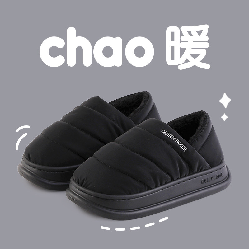 包跟棉拖鞋男冬季室内家居2024新款防滑防水厚底加绒保暖棉拖鞋女