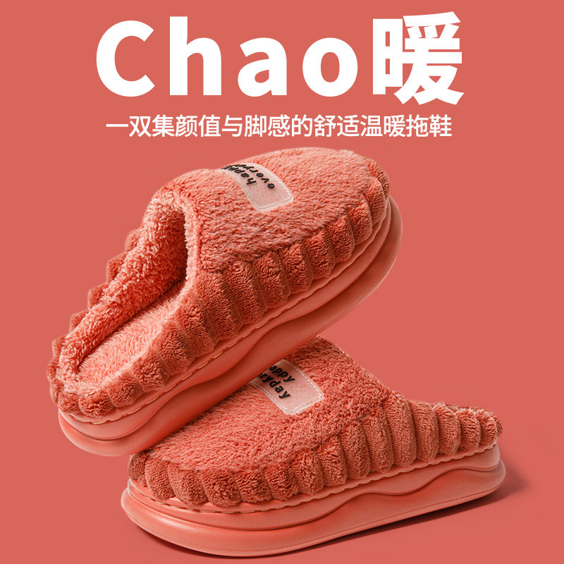 踩屎感棉拖鞋男女秋冬季可外穿室内家居防滑厚底保暖加绒毛毛拖鞋