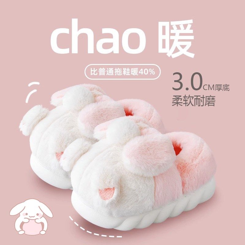 可爱毛绒拖鞋冬款棉拖鞋女加厚毛女款女士秋冬季2024新款居家厂家