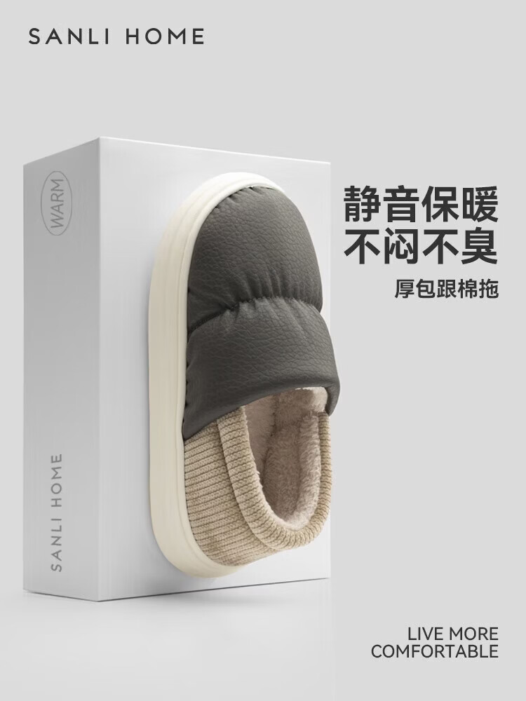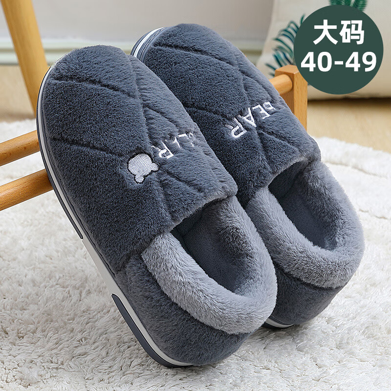 朴西踩屎感棉拖鞋女款防水冬季室内居家加绒保暖静音简约情侣棉拖鞋男 灰色 【简约大气】 44-45 适合(43-44)