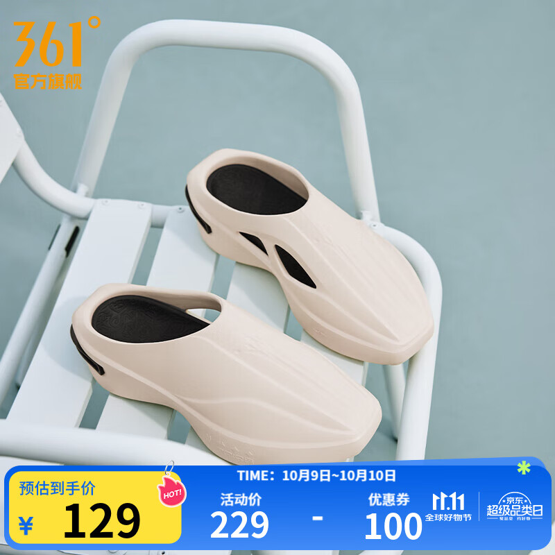 361° AG潮拖运动拖鞋男鞋AG夏季篮球厚底沙滩鞋休闲外穿凉拖鞋子男 燕麦奶/羊皮纸色 43