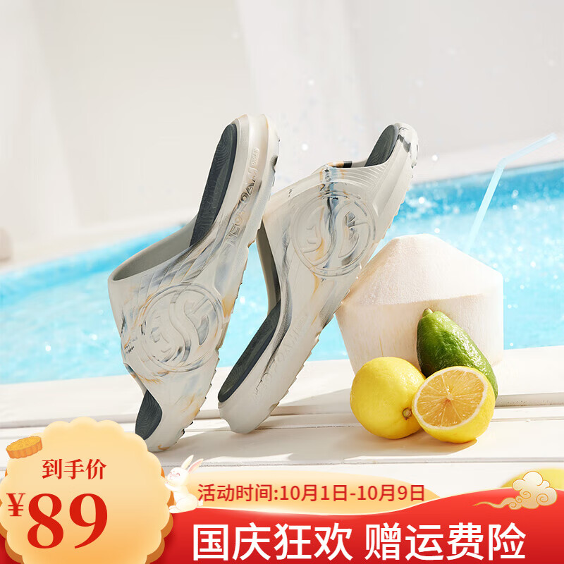 361°飞飚拖鞋男外穿夏季新款软底运动鞋户外沙滩拖鞋男透气凉拖 莲子白/杏茶色 40