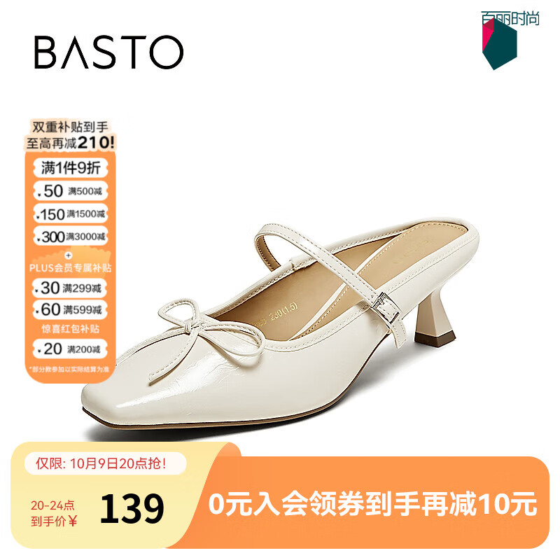 百思图2025夏季新款蝴蝶结一脚蹬穆勒拖方头细跟女凉拖鞋B1995BH5 米色 37