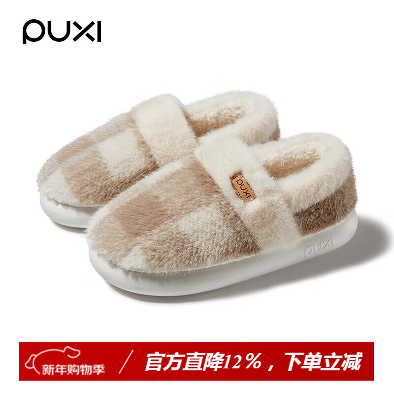 洁丽雅(grace)毛绒拖鞋女士冬季室内居家情侣款厚底防滑加绒保暖棉拖 A+升级款【加绒加厚棕色】 38-39 适合【37-38】