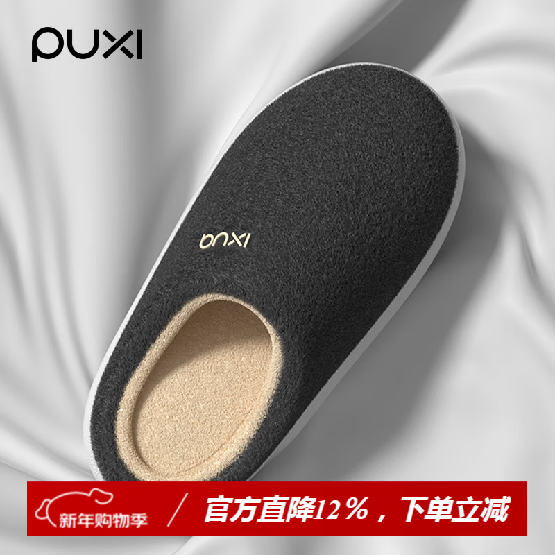 朴西踩屎感棉拖鞋女款防水冬季室内居家加绒保暖静音简约情侣棉拖鞋男 黑色 【经典百搭色系】 42-43 适合(41-42)