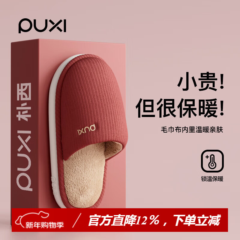 朴西冬季云软新款居家棉拖鞋女室内保暖锁温包头拖EVA防滑外穿棉拖鞋 酒红色 37-38