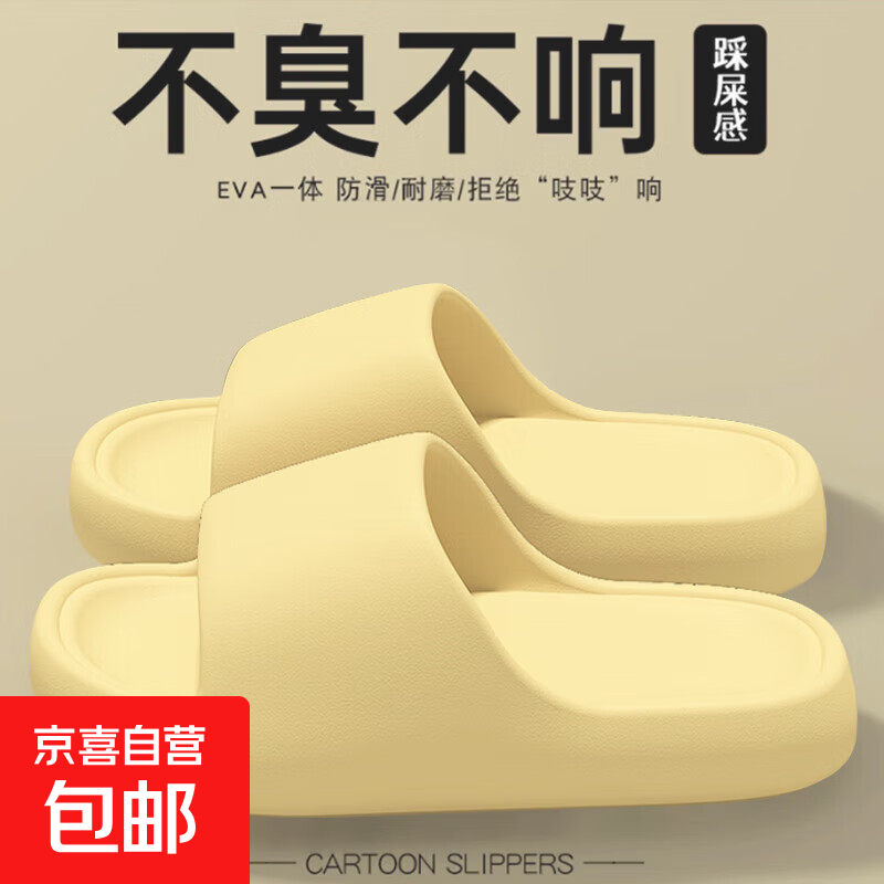 简约家用拖鞋女踩屎感厚底超软ins防滑舒适浴室洗澡宿舍凉拖鞋男 黄色 38-39