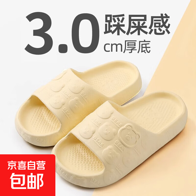 小熊四季室内浴室EVA静音一字拖防滑拖鞋女洗澡防臭情侣拖鞋男士 黄色 38-39