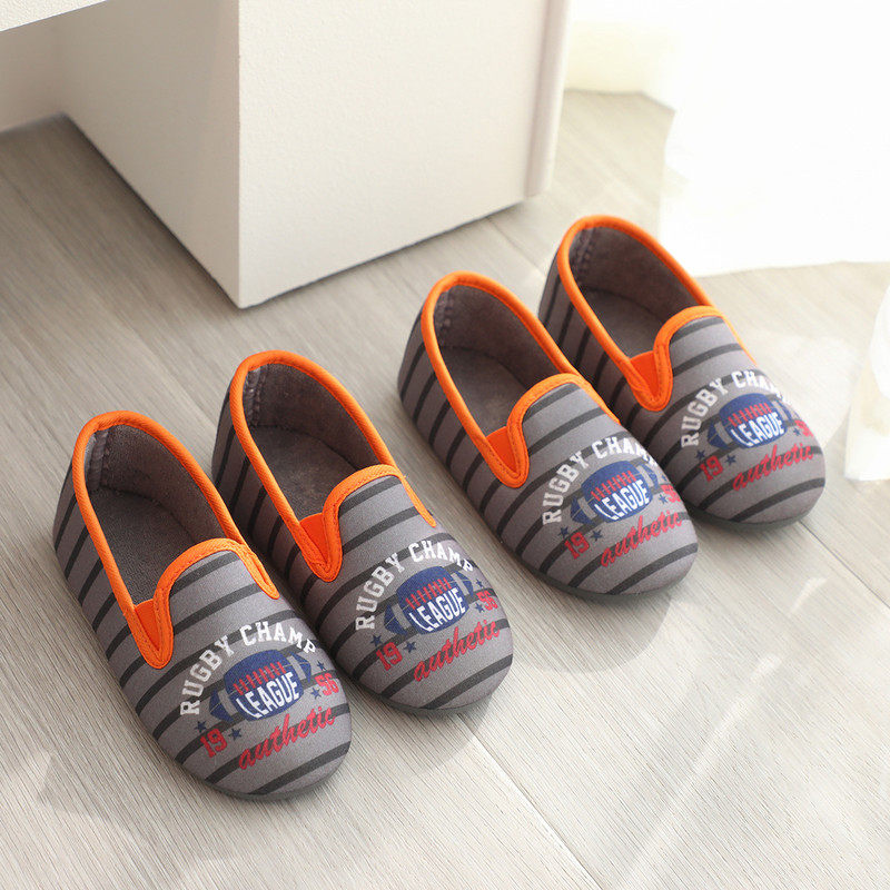 男童大童春秋室内条纹家居防滑包跟棉拖鞋换脚舒适