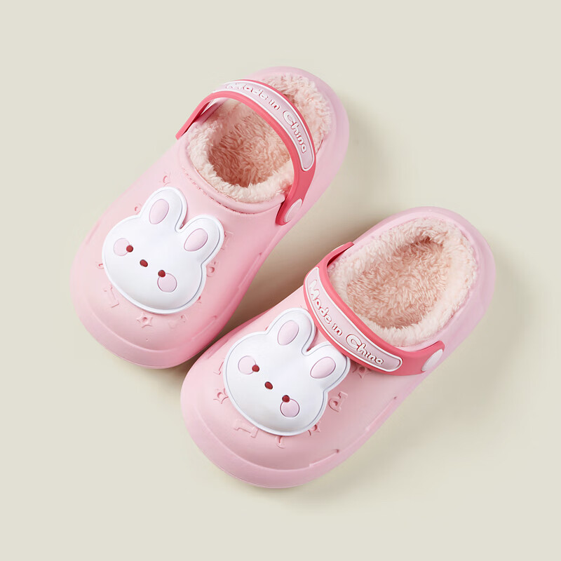 幸福玛丽儿童棉拖鞋女童冬季2023新款婴幼儿家居室内防水宝宝拖鞋女孩包跟 兔子粉色 内长15cm适合脚长15cm