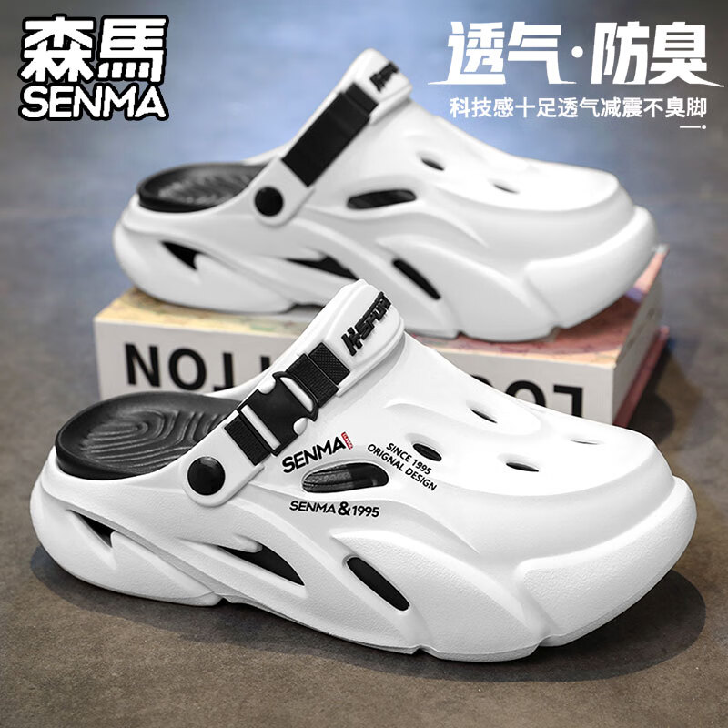 森馬拖鞋男夏季外穿开车两用休闲防滑凉拖青少年软底踩屎感溯溪洞洞鞋 白黑【升级款】 41 【40-41同码】