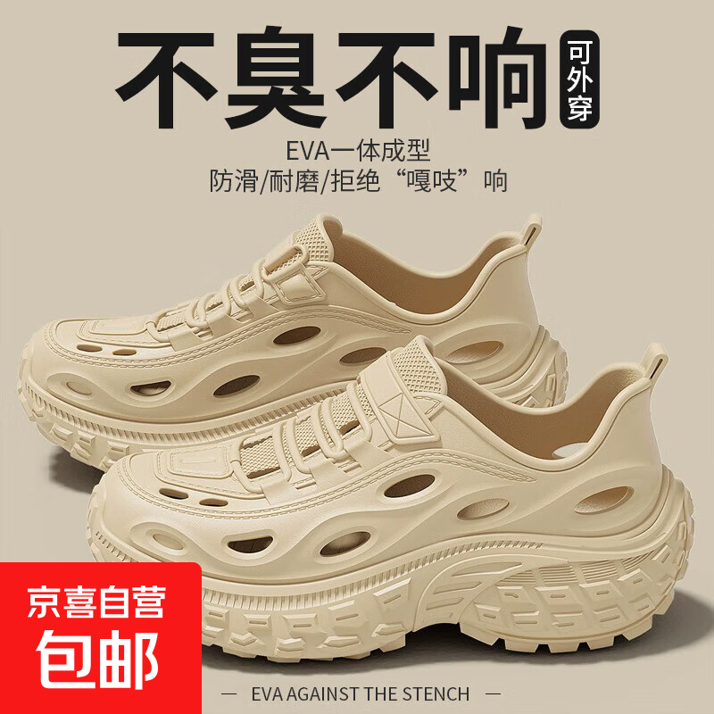 洞洞鞋男款夏季户外穿厚底eva防滑防臭开车透气凉鞋沙滩运动拖鞋 卡其【Eva厚底-防滑透气】 25 40-41 适合39-40脚穿