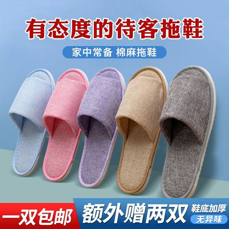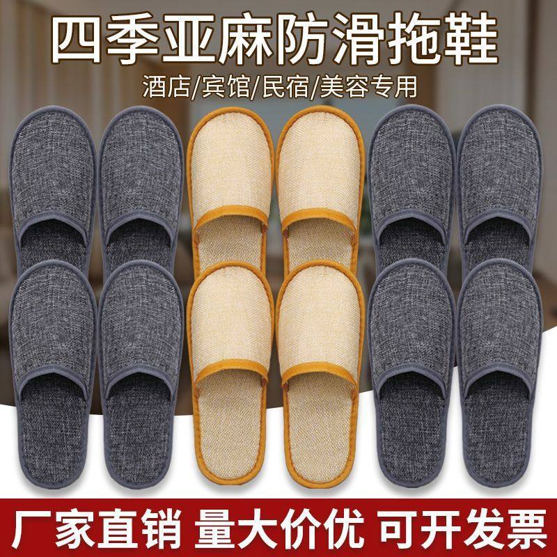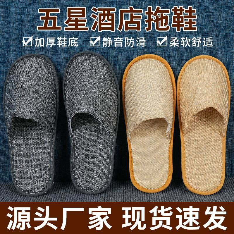 酒店一次性拖鞋宾馆民宿居家室内待客亚麻加厚加大防滑可洗澡定制