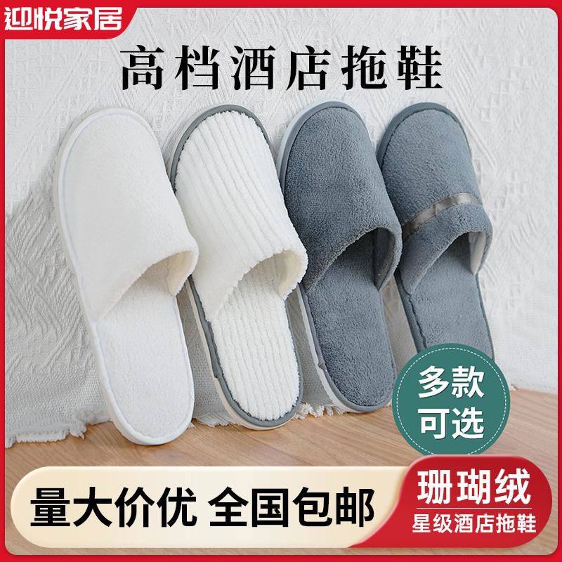 一次性拖鞋高档酒店宾馆专用珊瑚绒加厚防滑便携居家待客定制logo