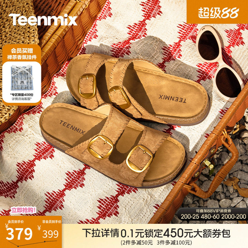 天美意一字拖度假风厚底勃肯拖鞋女外穿凉拖休闲凉鞋2026夏季新款