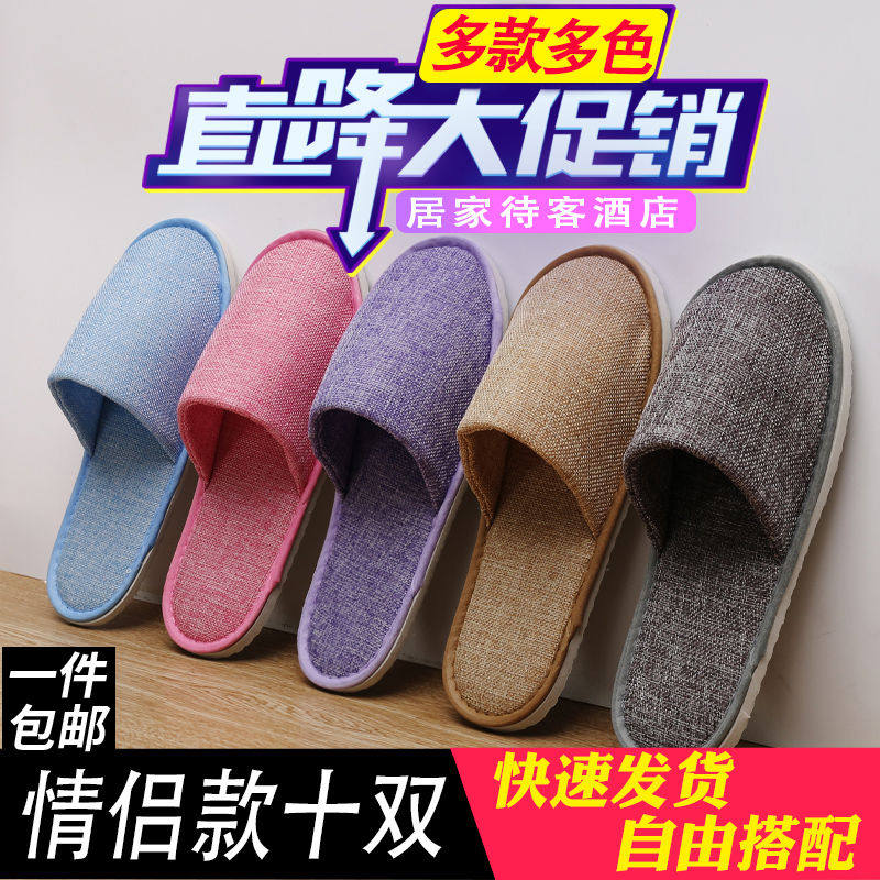 10双一次性拖鞋亚麻透气防滑加厚加大酒店宾馆民宿专用棉麻待客