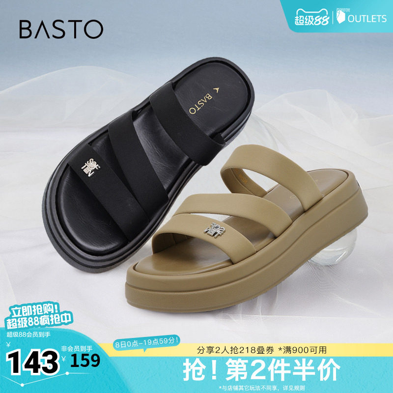 百思图春夏季新款商场同款时尚运动休闲厚底女拖鞋BG166BT4