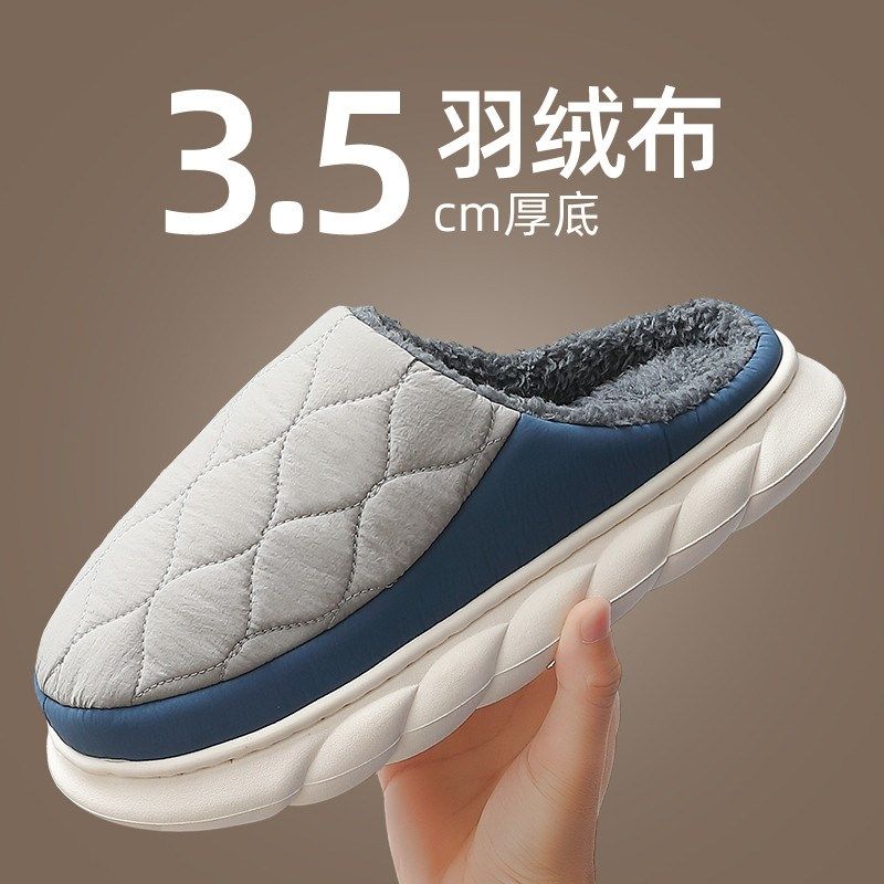 羽绒棉拖鞋男士冬季2024新款特大码室内家居防滑厚底大号保暖新款