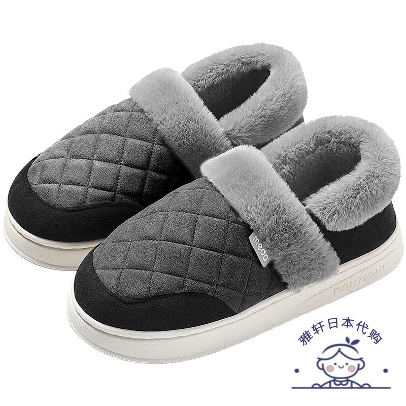 日本踩屎感棉拖鞋男士冬季2023新款室内家居毛绒保暖包跟厚底棉鞋
