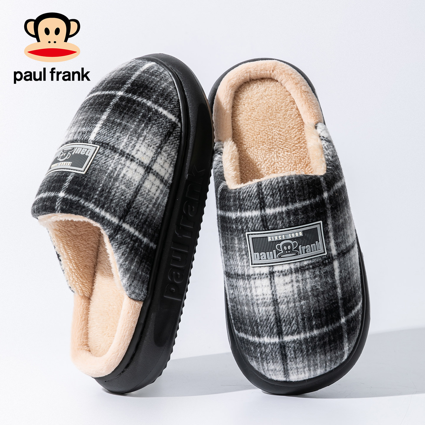 大嘴猴棉拖鞋男冬防滑厚底格子条纹毛绒保暖外穿居家女棉鞋秋冬
