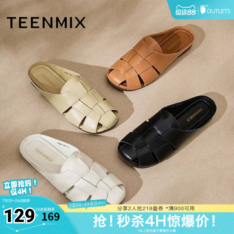天美意穆勒鞋包头半拖鞋女外穿凉拖罗马凉鞋子新款KT031BT4