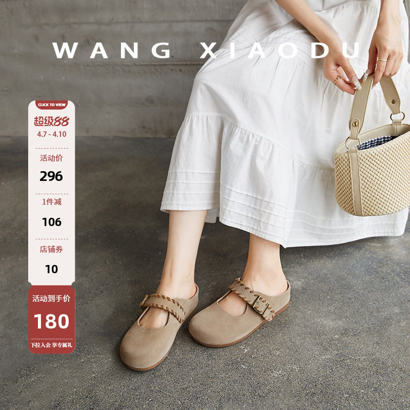 【王小毒】手作云阶○4.5cm内增高~包头拖女牛反绒一字扣勃肯拖鞋