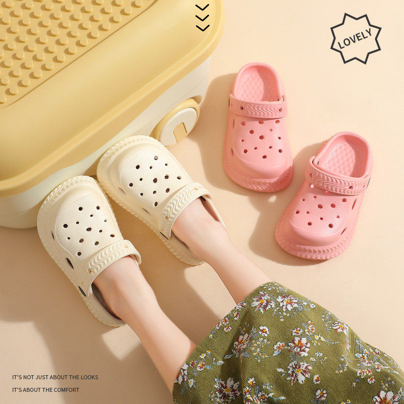 厚底儿童洞洞鞋夏季踩屎感外穿女宝宝拖鞋软底两穿公主包头沙滩鞋