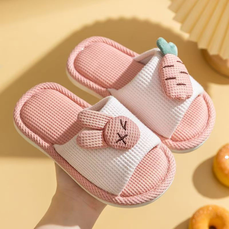 中大童亚麻防滑拖鞋儿童四季居家室内舒适轻便可爱卡通