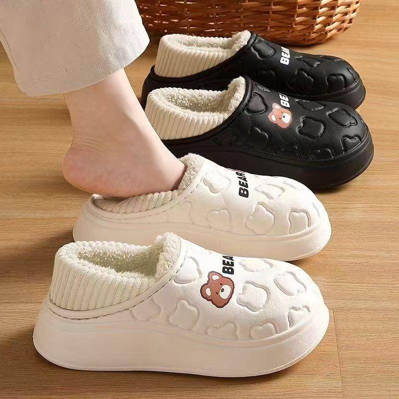 大嘴猴棉拖鞋女士秋冬半包根简约加厚保暖厚底室内居家毛毛拖鞋男