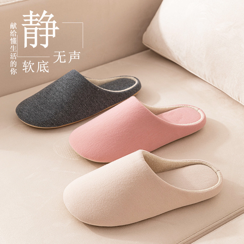 日式静音拖鞋冬季女士居家用四季防滑木地板软底室内声棉拖
