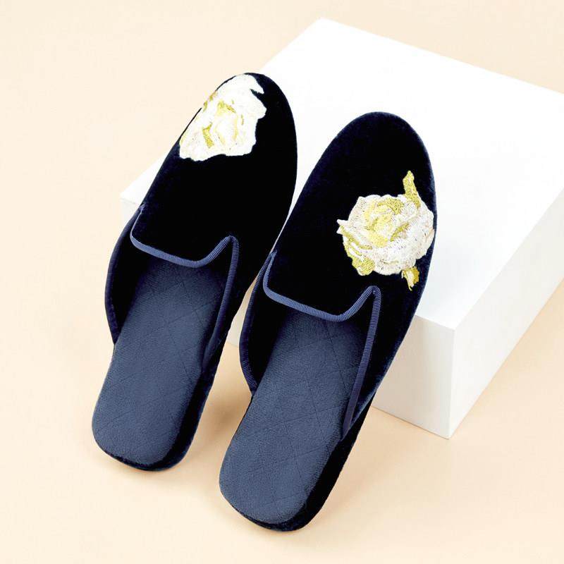高级四季丝绒包头绣花室内软底家居拖鞋女防水防滑静音法式轻奢
