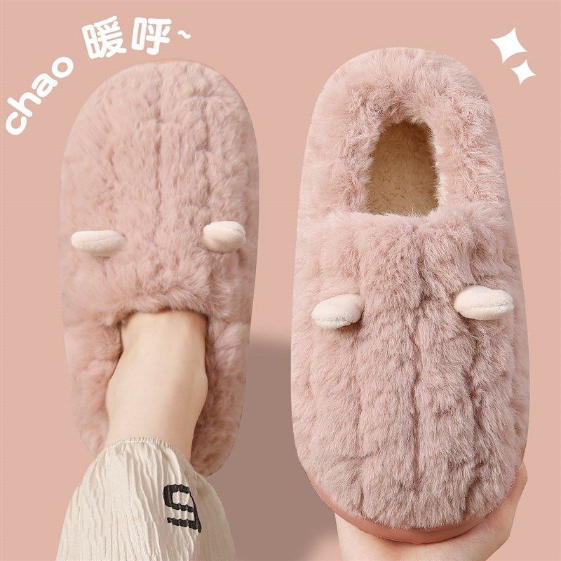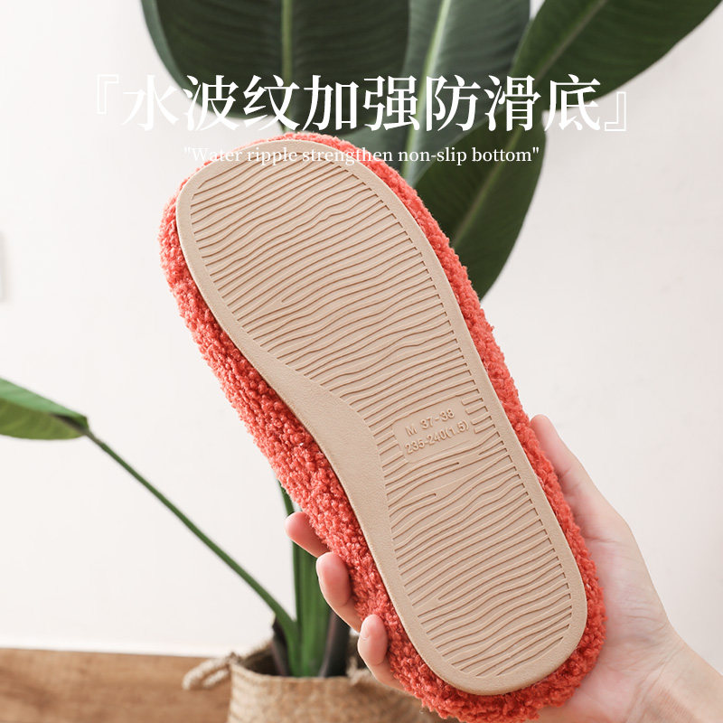 日式简约毛绒保暖棉拖鞋男士秋冬季情侣室内家用木地板静音托鞋女