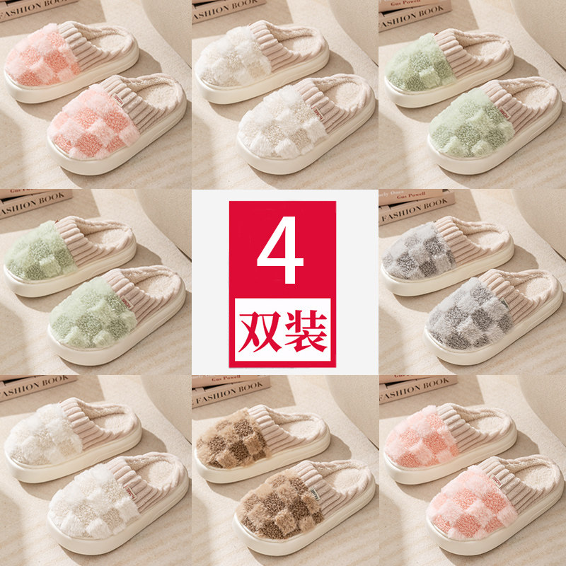 4双装棉拖鞋女冬季室内家居客用2023新款居家用待客毛拖鞋男冬款2