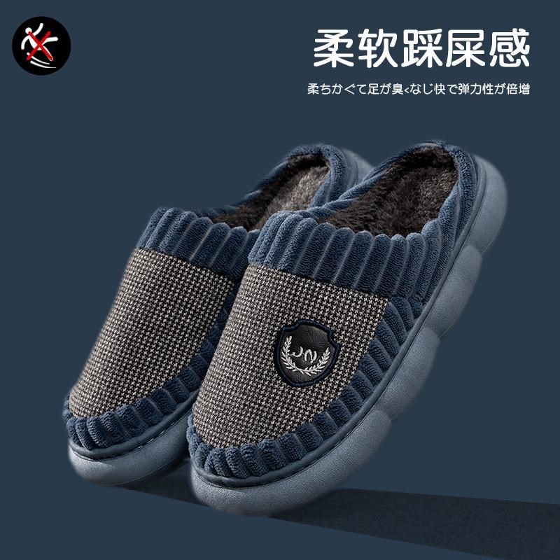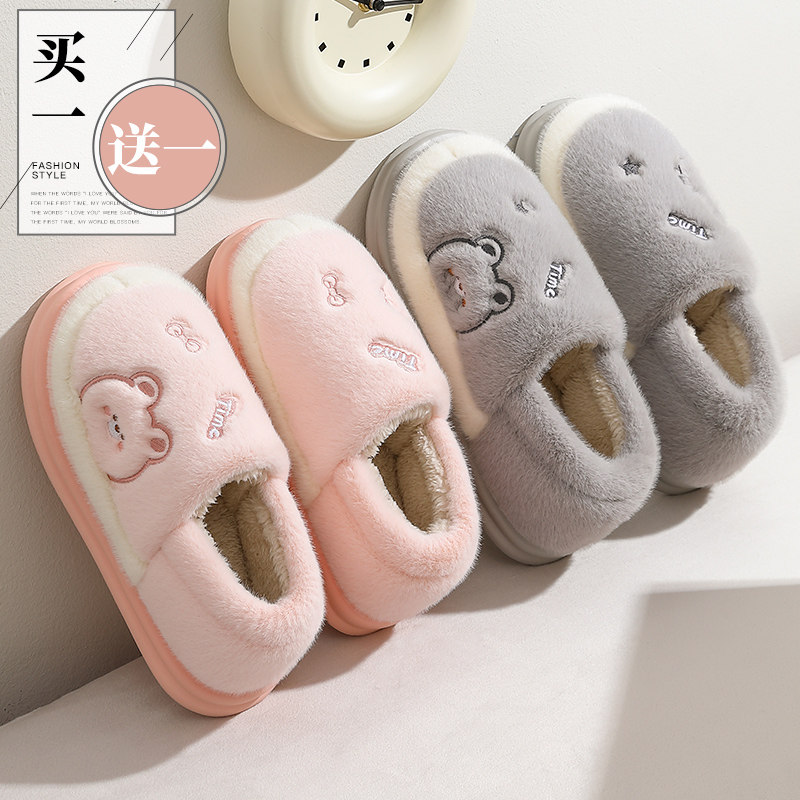 买1送1棉拖鞋女士包跟冬季室内家居情侣一对厚底毛绒保暖棉鞋男款