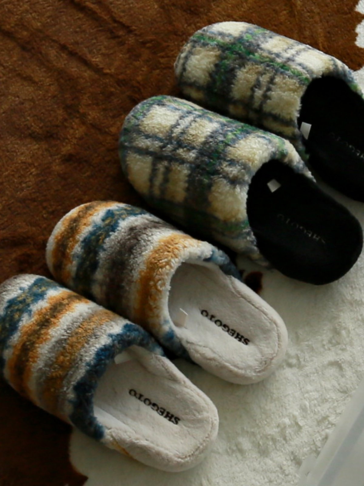 复古格纹高级感格子棉拖鞋男女情侣款室内家用秋冬季防滑软底毛绒