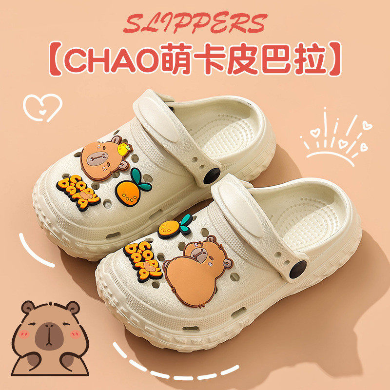卡皮巴拉夏季男童洞洞鞋踩屎感防滑包头透气亲子中大童凉拖鞋