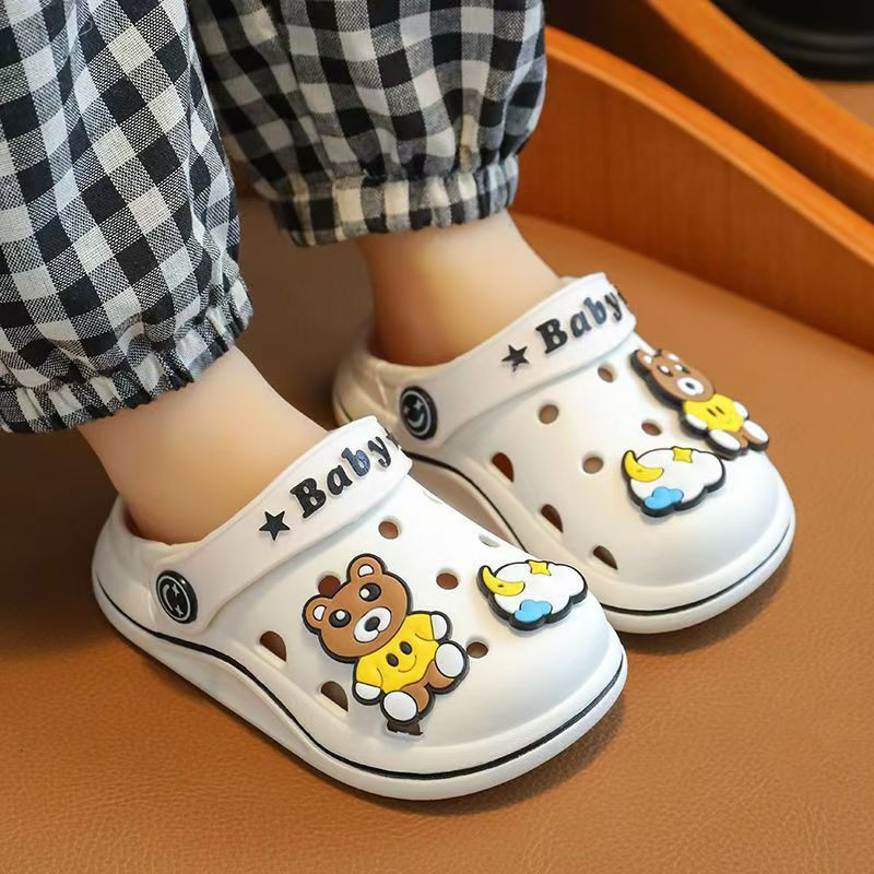 儿童可爱轻松熊洞洞鞋男女童宝宝防滑凉鞋亲子夏包头沙滩拖鞋秋千