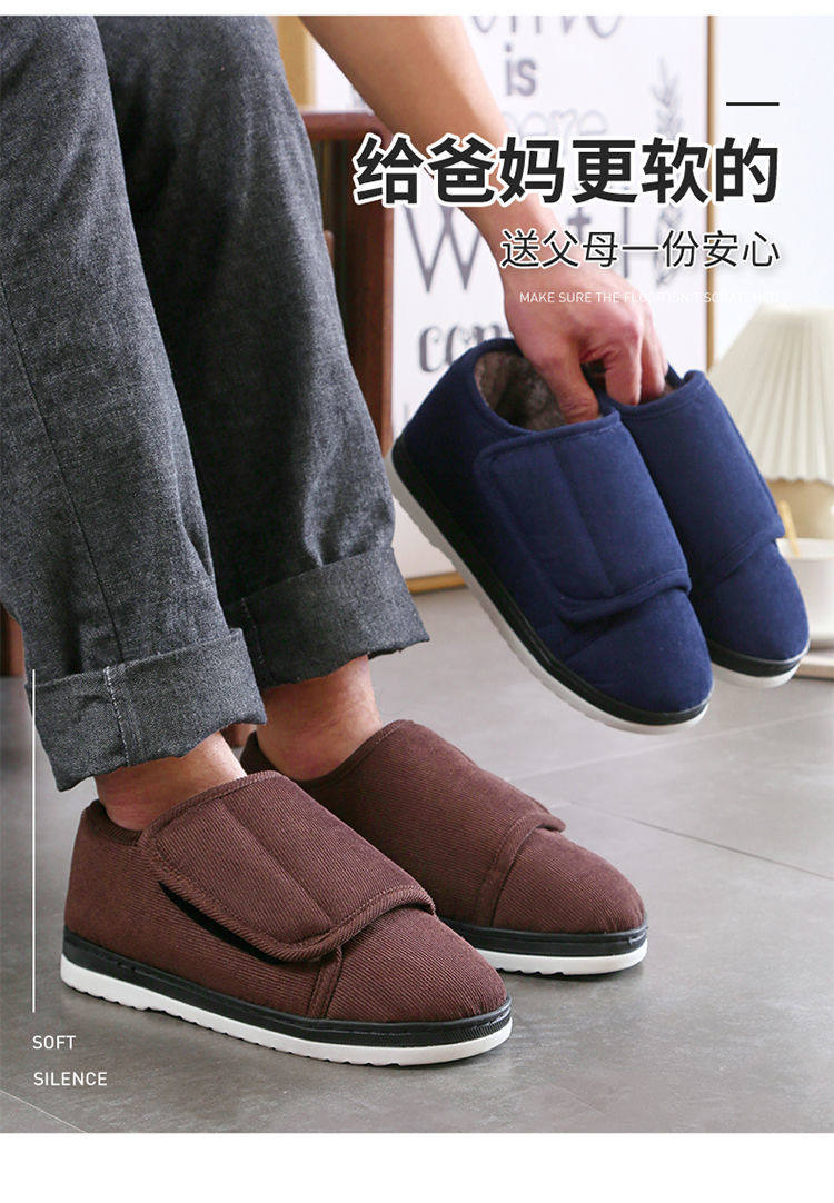 保暖鞋中老年人棉拖鞋女家居棉鞋男冬季保暖加绒毛毛鞋脚背妈妈鞋