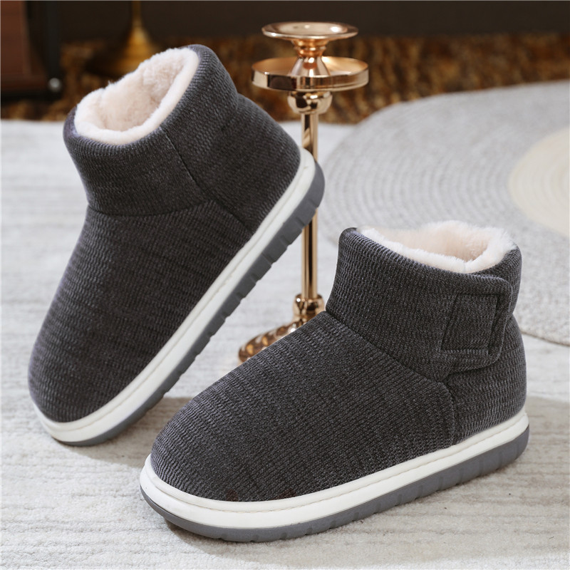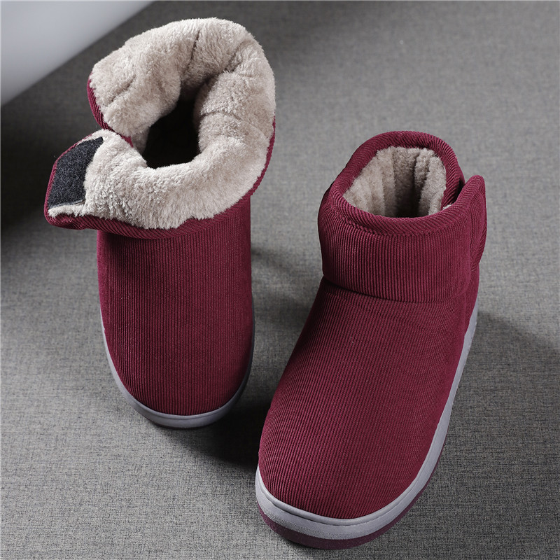 冬季加绒加厚男女家居保暖棉鞋外穿防滑厚底中老年高帮包跟棉拖鞋