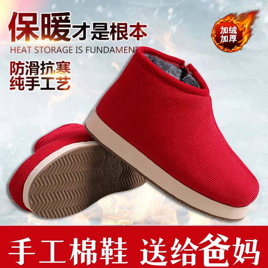 冬季保暖手工棉鞋男女加绒加厚底防滑包跟棉拖鞋居家中老年月子鞋