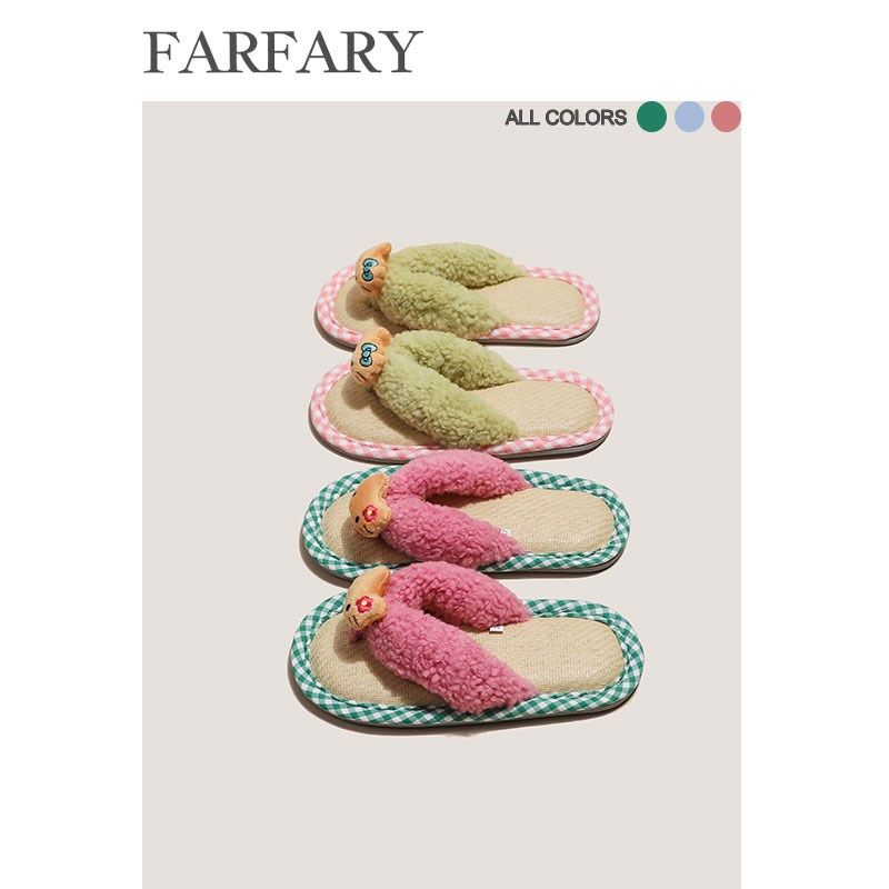 可爱日系亚麻拖鞋女夏季家居室内防滑防臭软底轻便少女人字拖外穿