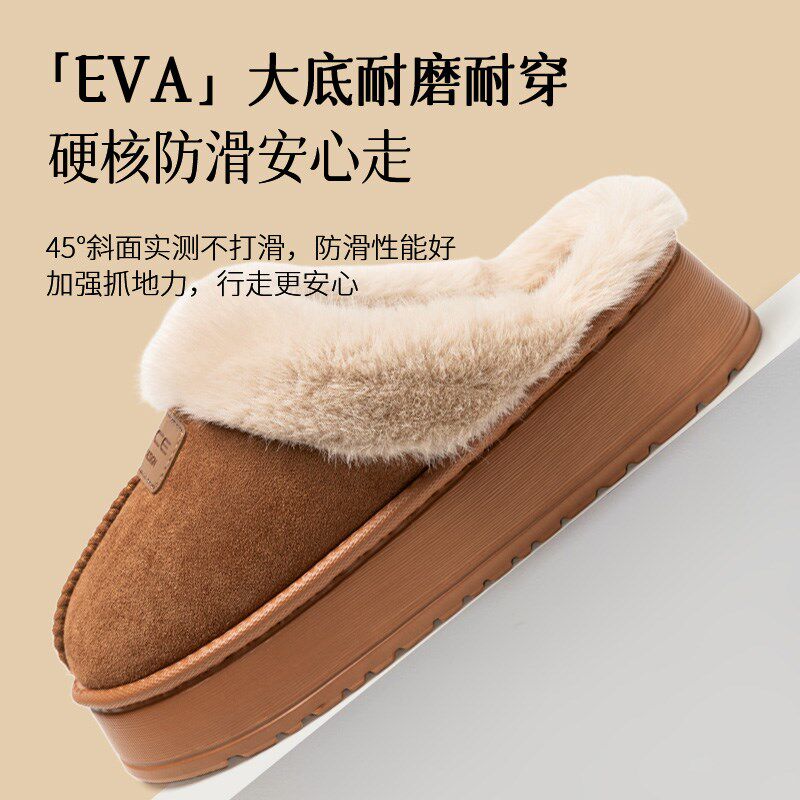 棉鞋女踩屎感厚底高包跟防滑室内家居家用冬季月子棉拖鞋保暖毛绒