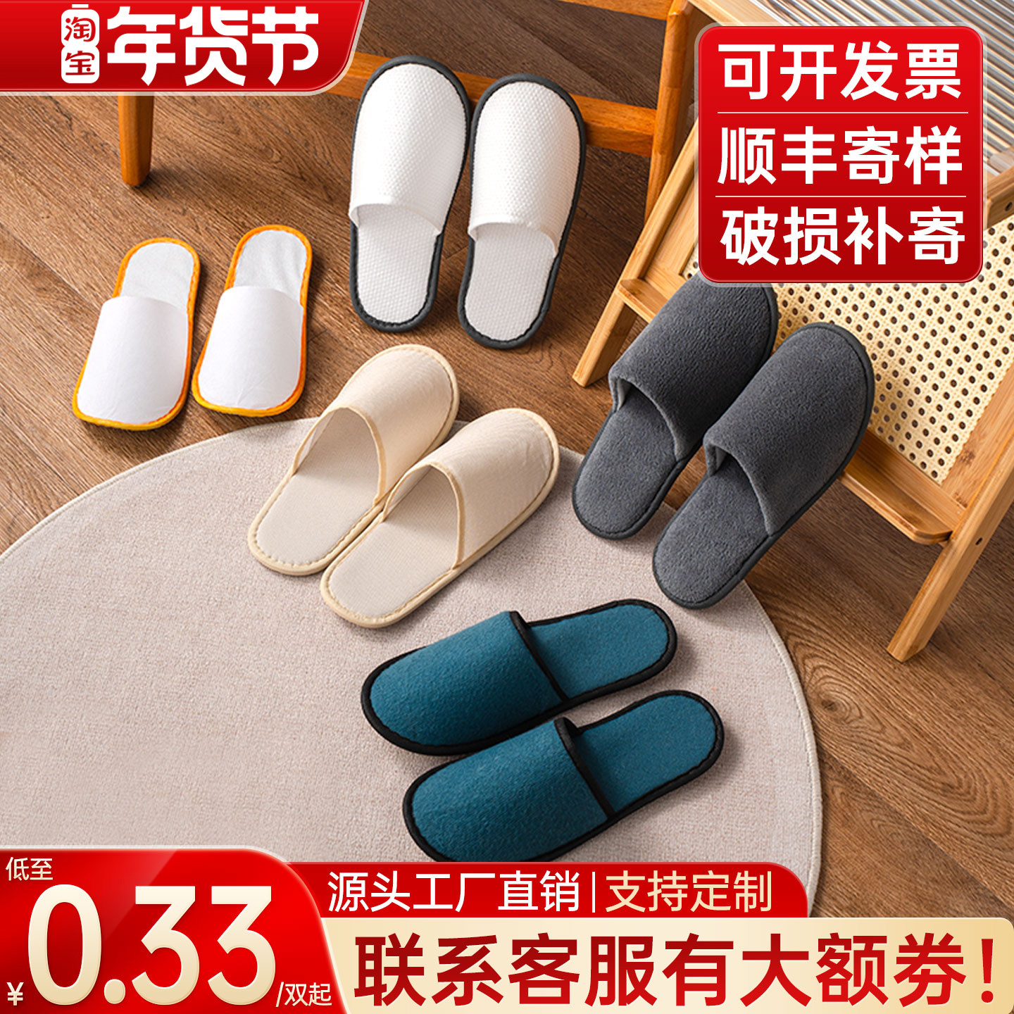 酒店专用珊瑚绒一次性拖鞋加厚防滑民宿居家待客可批发定制Logo