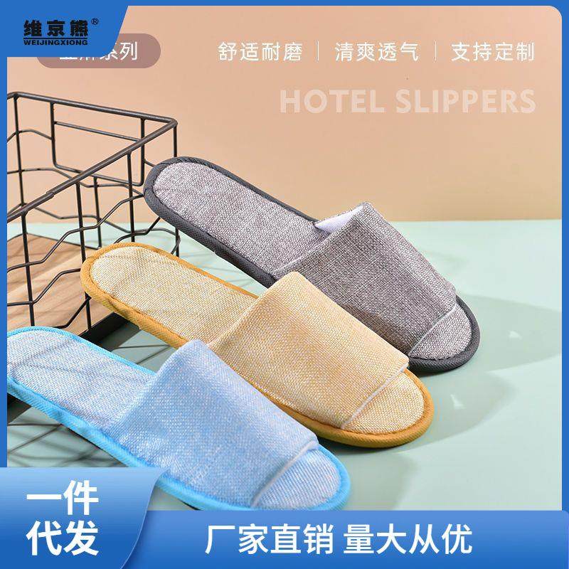 10双装一次性待客拖鞋夏季亚麻加厚居家旅行便携酒店宾馆民宿批聚