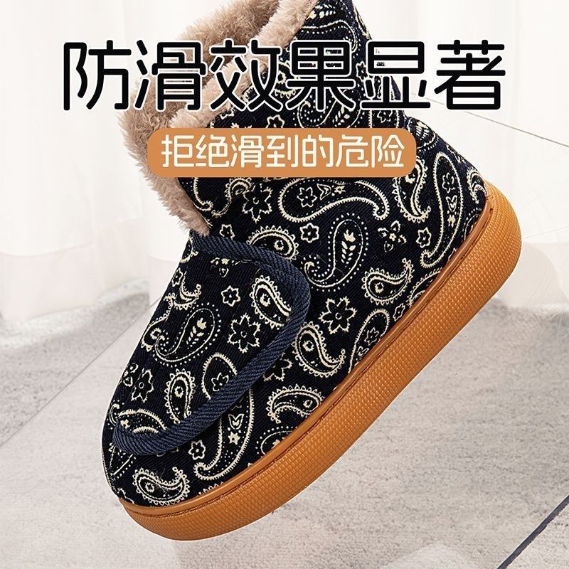 。冬季老人中老年棉鞋妈妈加厚家居男女拖鞋防滑厚底保暖居家外穿