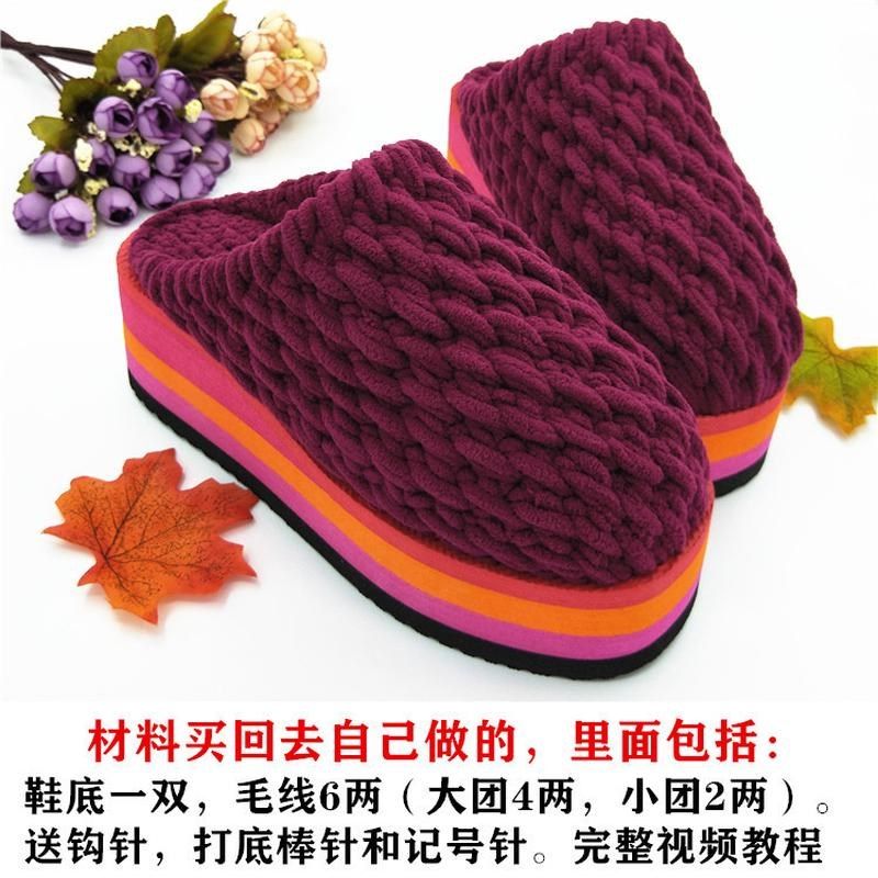 手工鞋底加厚坡跟耐磨防水底防滑女钩针编织毛线拖鞋底秋冬季新款