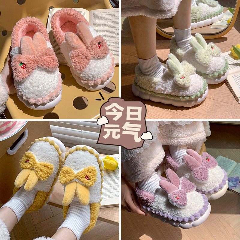棉拖鞋女士2024新款秋冬季保暖家居室内防滑可爱情侣厚底男棉拖鞋
