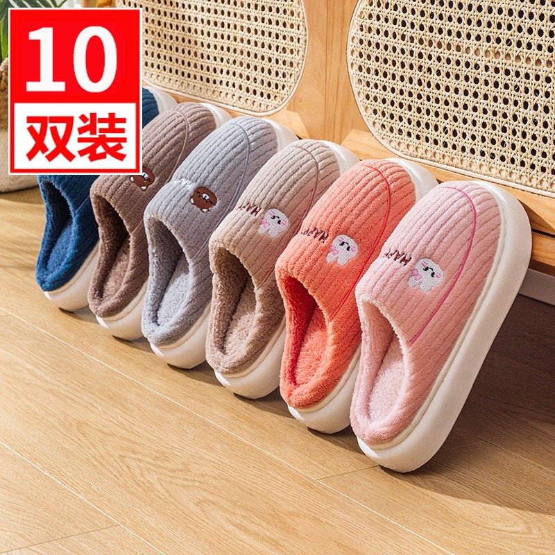 10双装待客人毛拖鞋女士酒店冬季2024新款家居保暖招待棉拖鞋男