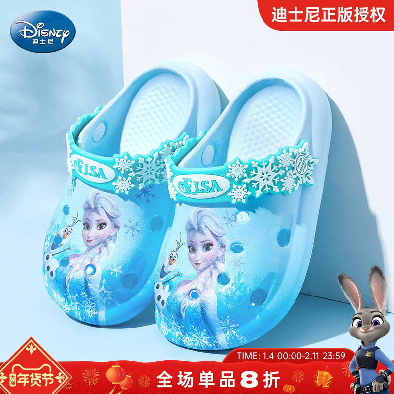 迪士尼女童洞洞鞋夏季2025新款爱莎公主小孩凉拖鞋女孩儿童拖鞋女