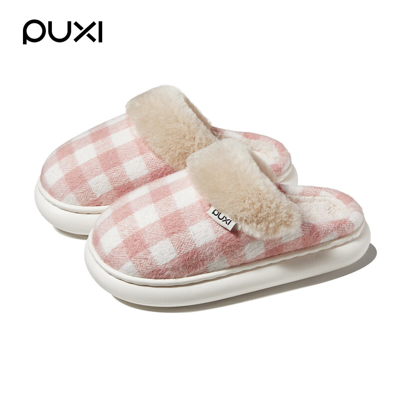 朴西踩屎感棉拖鞋女冬季新款室内居家加绒保暖厚底防滑耐磨棉拖鞋男 蜜桃粉 【柔和温馨】 37-38 适合(36-37)
